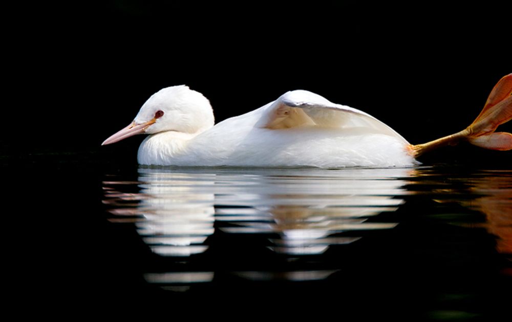 “Deze witte fuut (zie bovenaan in de header) is echt gaaf. Hij heeft rode ogen, maar is tóch geen albino, want dat is de normale oogkleur van een fuut en hij overleeft prima! De veren zijn smetteloos wit en er is geen enkel donker veertje zichtbaar, dus dit is een mooi geval van leucisme. Ik kreeg een tip van een van de mede-verzamelaar dat hij tussen de normale futen zat.”