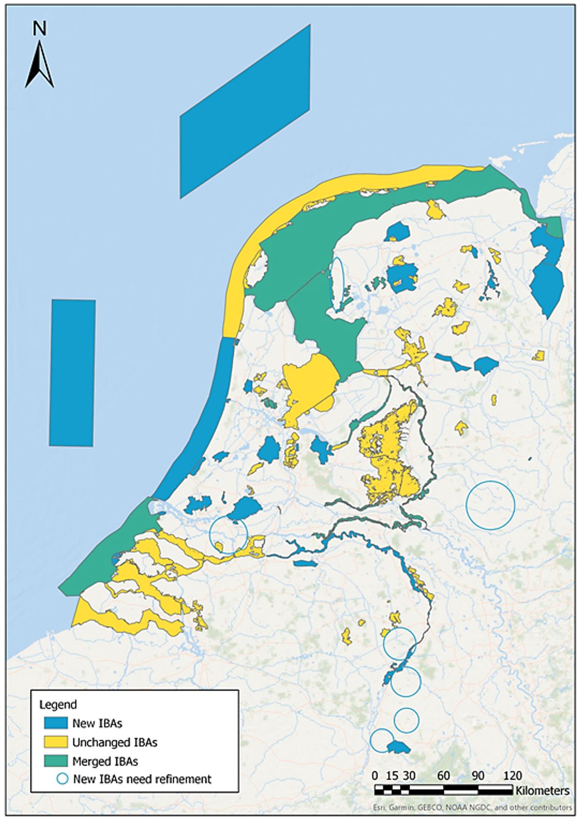 Het rapport identificeert 106 IBA's in Nederland, evenveel als in het jaar 2000. Wel zijn er verschuivingen: 30 kleine IBA's zijn samengevoegd tot 8 grotere en er zijn 39 nieuwe gebieden. Daaronder bevinden zich gebieden voor soorten die zich de afgelopen twee decennia hebben gevestigd als broedvogels in Nederland, zoals de kraanvogel, de middelste bonte specht, de oehoe en de zeearend. Ook enkele grote gebieden in het Nederlandse deel van de Noordzee behoren tot de nieuw geïdentificeerde IBA's voor zee- en kustvogels (de Bruine Bank en de Hollandse Kust).