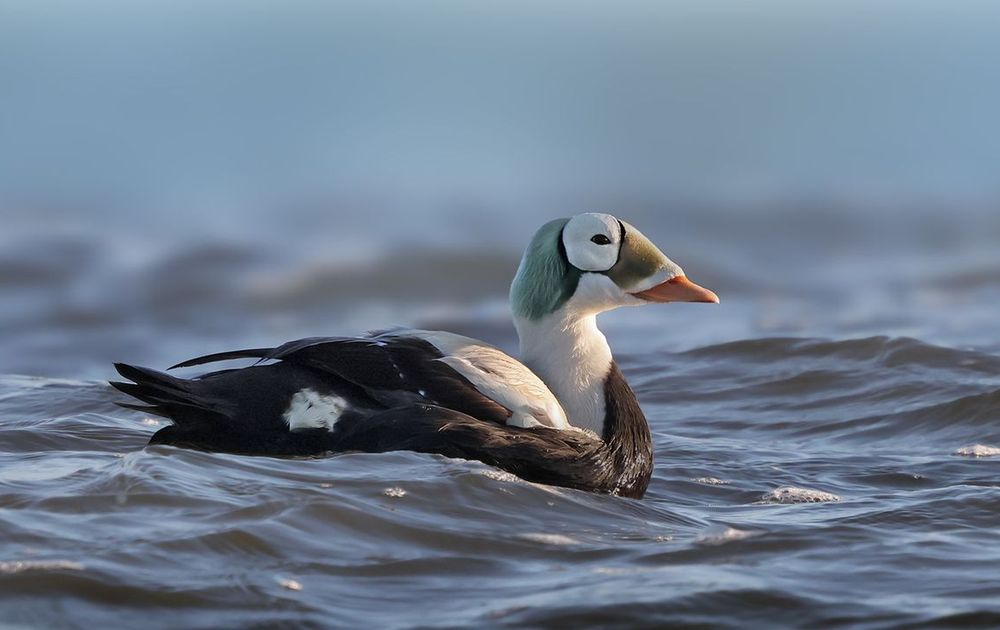 Hoewel ik veel foto’s kon maken tijdens die onvergetelijke eerste middag, zwom hij vrij ver weg van de kant en waren de foto’s leuk, maar niet meer dan dat. De volgende dagen kwam de eider iets dichterbij, maar hing de mist als een grijze deken over de vogel. Elk moment met beter licht fietste ik naar de Waddenzee, maar erg bevredigend was het niet. Tot zondagochtend 26 januari.
