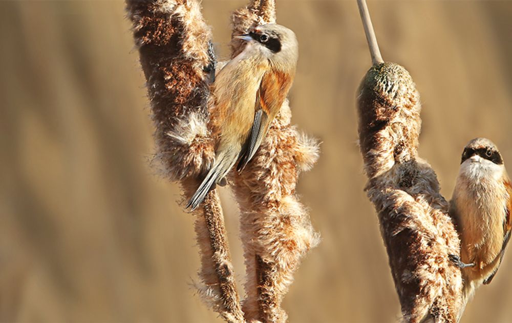 Ik heb ze in Nederland maar vier keer gezien en dan vluchtig of ver weg, zonder de mogelijkheid om goede foto’s te maken. Maar kort geleden, in Berkel en Rodenrijs lukte het wel. Daar waren een stel buidelmezen te bewonderen, terwijl ze foerageerden op de sigaarvormige aren van lisdodde. Twee overwinteraars dus die niet naar zuidelijke oorden waren vertrokken.