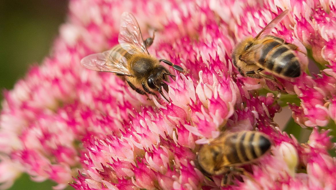 Verder trekken de bloeiende planten veel honingbijen, tuinhommels en zweefvliegen aan.
