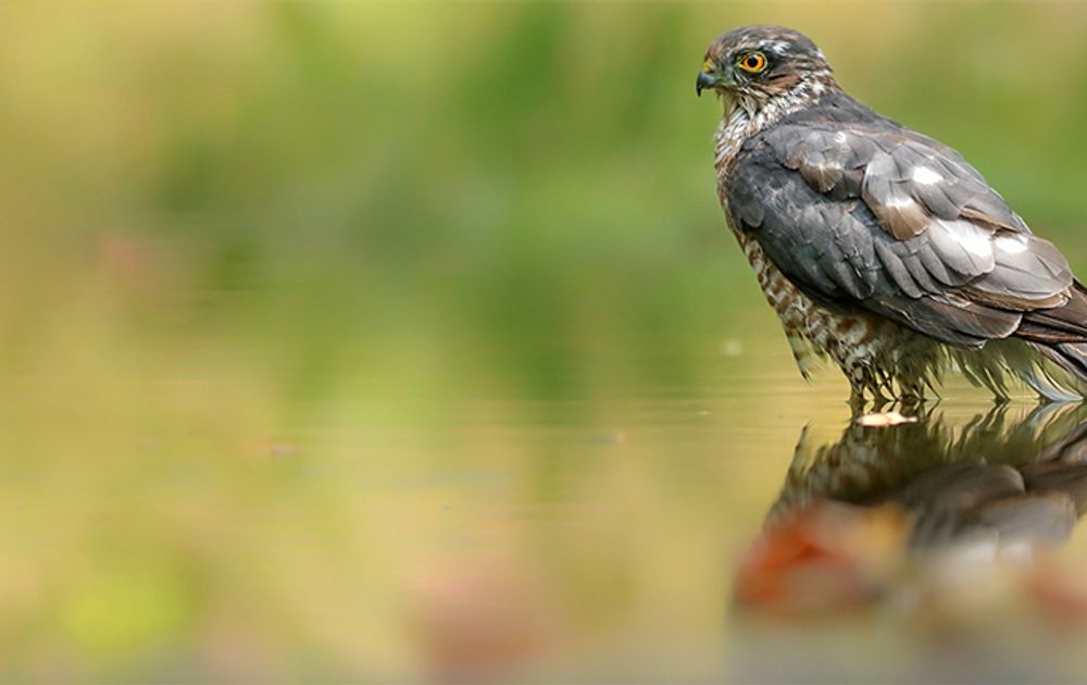 Heel stil en zonder plotselinge bewegingen heb ik mijn camera weer gepakt en snel wat foto's gemaakt. Mocht de sperwer wegvliegen, dan heb ik tenminste iets, dacht ik. Al snel bleek dat de sperwer uitgebreid in bad ging en ik alle tijd had deze mooie plaat te maken. Heel tof.