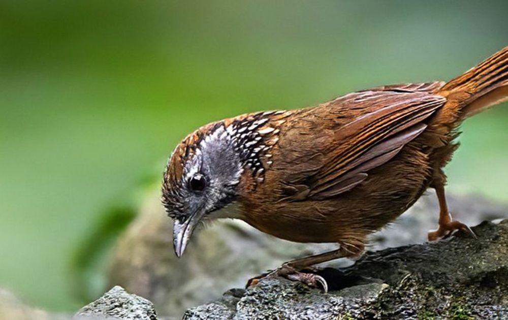 Het was niet de beste tijd van de dag dat we een ietwat open plek met grote blokken karststeen in een donker stuk van zijn bos bezochten, maar dit was de arena waar het zou moeten gebeuren. De vogels waren, ondanks dat ze de stem van Mr. Nong kunnen herkennen, echter in geen velden of wegen te bekennen. Dan maar plan B. Ik bedacht me dat er waarschijnlijk zoveel fotografen hier komen, dat ze ook het geluid van de camera’s herkennen. Ik liet mijn camera twee seconden ratelen en binnen no-time stond er een familie Nonggang Babblers op het rotsblok! Missie geslaagd en we konden ons focussen op de vogelrace.