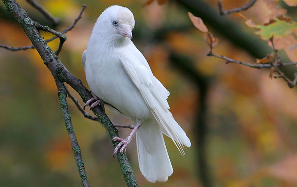 De zes zwart-grijze vogels lijken er beduusd van. En de twee op de tak zitten nu doodstil. Ze zien de witte rustig stappend een kruimel hier en een brokje daar oppakken – ‘oppakken’ is de beste vertaling uit de kauwentaal. Een voor een schudden de donkere kauwen hun verlegen verwarring af. Ze schuifelen voorzichtig weer in de richting van de kruimels.