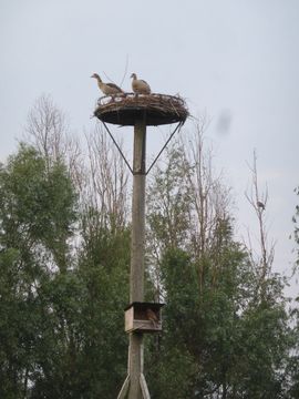 Inmiddels hebben de nijlganzen hun kans schoon gezien en hun intrek genomen op de ooievaarspaal. Jane vindt het maar niks, al die drukte boven haar hoofd, maar ze was toch al aan de ooievaars gewend. De nijlganzen lijken ook eieren te hebben gelegd, want ze wisselen hun broeddiensten eerlijk af. Tijdens de hittegolf zitten ze moedig beurtelings boven op de paal in de brandende zon.