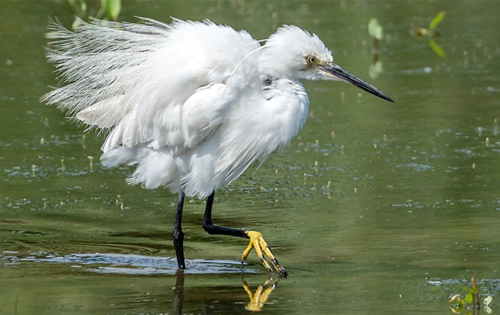 Maar, direct na de broedtijd valt deze ‘dame’ ook wel in het binnenland te bewonderen, onder andere langs de Grote rivieren. Als je geluk hebt foerageert er eentje in een strang (nevengeul), vlakbij de winterdijk. Dan kun je hun vistechnieken goed bekijken. Langzaam stap-voor-stap wadend, waarbij de tenen tot boven het wateroppervlak worden opgehaald. Rennend en flitsend happend naar een (school) vis(jes). Of, in ultra slow motion met één vooruitgestoken poot het wateroppervlak in trilling brengend en de nek horizontaal in de katapultstand. In tegenstelling tot grote zilverreigers zie je ze eigenlijk niet op land naar eten zoeken.