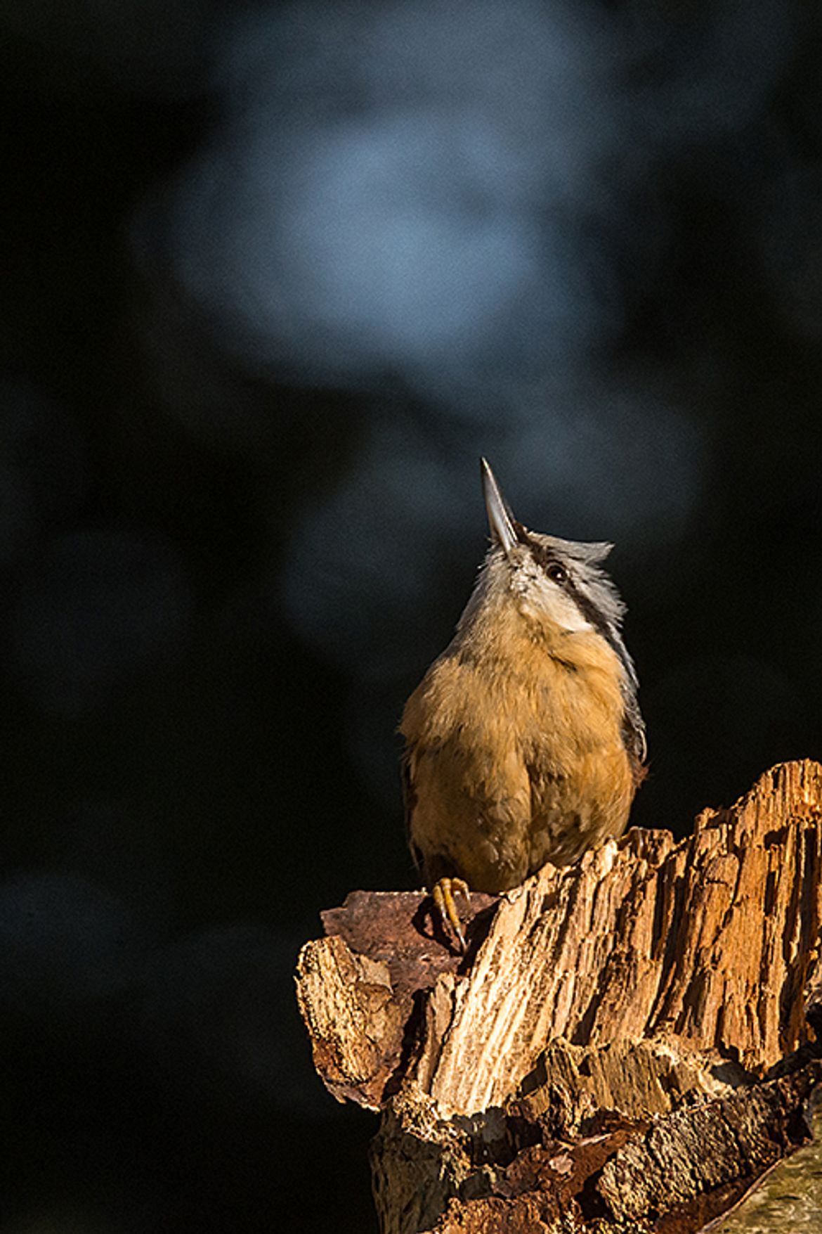 Het licht! Alsof Rembrandt zelf de fotosetting schilderde. Door de ligging van de hut en de bomen in de omgeving streelt het zonlicht het vogeltoneel. Een half uur later heb je dan weer te maken met fel zonlicht en harde schaduwen. Voor de fotograaf betekent dit hard werken en steeds weer aanpassen. Dit is dus een hut voor creatieve fotografen. Alle automatische belichtingsmogelijkheden op je camera gaan uit, tijd voor ouderwets handwerk. De foto van de boomklever toont hoe bijzonder dit kan zijn.