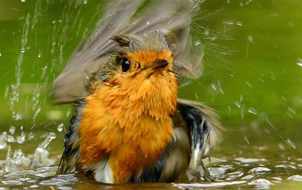 Niet alleen drinken, maar ook badderen is absoluut onmisbaar voor vogels. Ze maken hun veren dan niet alleen schoon, maar smeren er ook een laagje vet over. Dat vet is afkomstig van hun stuitklier - net boven de staart - en lijkt makkelijker te verspreiden over natte veren. Het vet verzorgt ze, maakt ze waterafstotend en beter isolerend. Als vogel overleef je gewoonweg niet zonder.