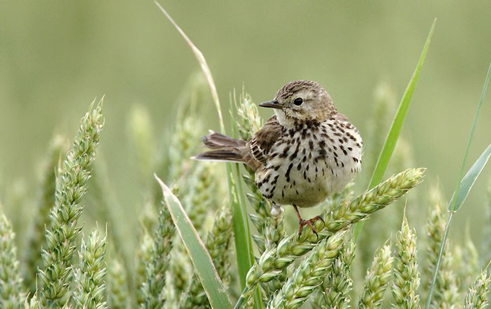 Als de Scandinavische graspiepers nog op weg zijn naar het noorden, zitten onze eigen broedvogels, duidelijk bleker van tint, midden in het broedseizoen. De mannetjes zijn druk met hun zangvluchten, terwijl een flink deel van de vrouwtjes al op de eieren zit. Begin mei worden de eerste jonge graspiepers vliegvlug.