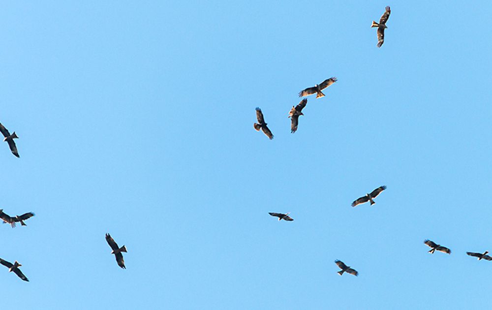 Het groepje Vogelbescherming-leden dat vorig jaar meeging, vond de arenden het meest spectaculair. En dat waren ze ook. De reizigers hadden er ook wat geluk bij. De week ervoor werden de vogels tegen gehouden door een slechtweerfront. Toen wij aankwamen, bracht een opklaring ze op de vleugels en barstte de trek uitbundig los.