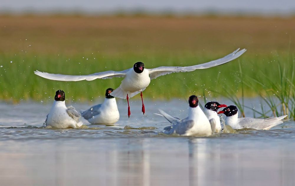 Als wij het gebied in wandelen, valt inderdaad de enorme hoeveelheid vogels op. We zien talloze visdieven, bergeenden, zwartkopmeeuwen, scholeksters, tureluurs en kluten. Zelfs de zeldzame dwergstern is hier talrijk. Aan de rand van het gebied zitten ouderwets veel veldleeuweriken en overal duiken wulpen en oeverlopers op. Gelukkig zien we ook nog wat grote sterns. Een fractie van het jaar daarvoor, maar ze zijn er!