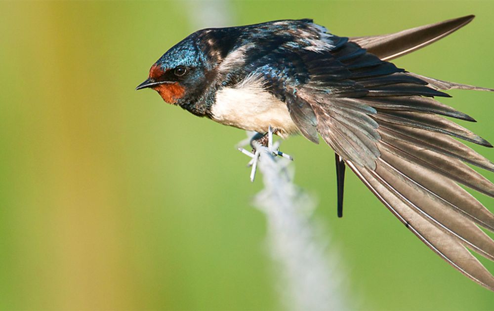 Begin april kwamen de boerenzwaluwen. Toen ik begin 's middags van mijn werk kwam en achteruit de oprit inreed, zag ik in mijn achteruitkijkspiegel de eerste in een flits bij de voordeur wegvliegen. Snel liep ik om het huis, om mijn vrouw uit de groentetuin te sleuren. Vanuit het keukenraam keken we samen hoe de vogels zich op hun nestplankje bij de voordeur settelden. Voor ons betekent dit dat we zeer content de voordeur het hele seizoen niet meer gebruiken. We willen ze voor geen goud verstoren.