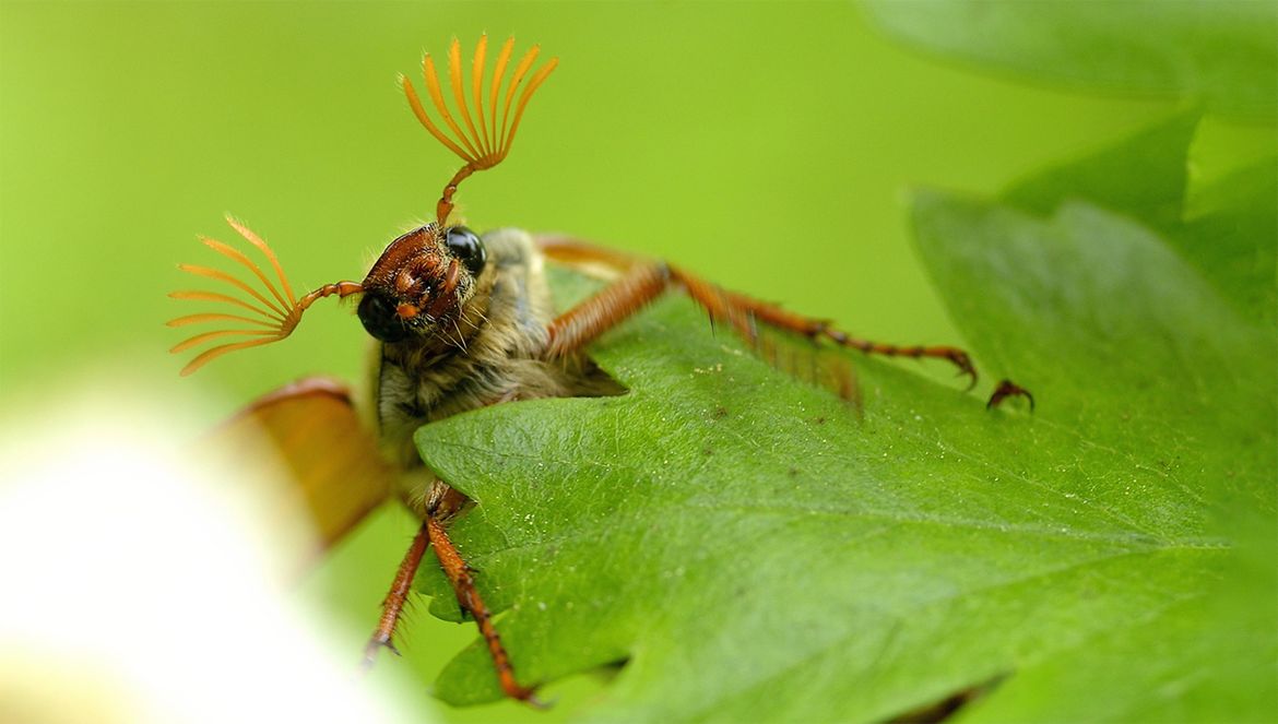 In de meimaand is de kans het grootst om meikevers te zien; what’s in a name. De drie centimeter grote kevers zijn opvallende verschijningen. Ze hebben stevige bruine vleugelschilden, maar het meest tot de verbeelding spreken de op antennes lijkende voelsprieten. Meikevers leven als larve in de grond en komen in mei te voorschijn. Meestal in eiken of beuken of in oude brede beukenhagen. Op sommige plaatsen kunnen ze massaal voorkomen en vreten dan in korte tijd een boom kaal. Helaas zijn meikevers op veel plaatsen verdwenen of zeldzaam geworden. In juni kun je een kleinere uitgave van de meikever zien: de junikever.