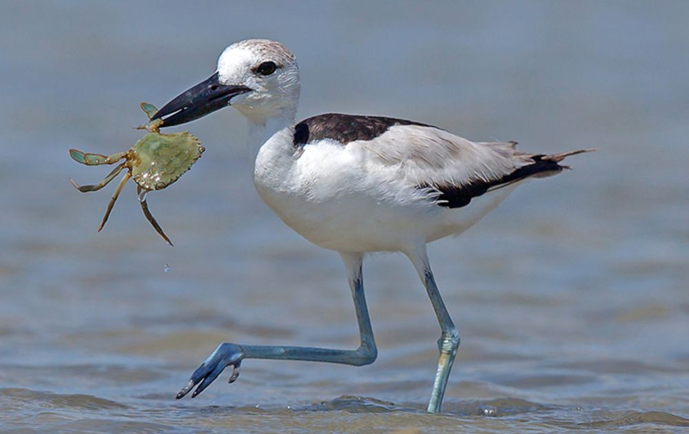 Eén van de meest opvallende fenomenen in de Omaanse waddenzee is de onwaarschijnlijke hoeveelheid krabben, vertelt Bom. “Er komen hier wel vijftig verschillende soorten voor. Schelpdieren heb je ook genoeg, maar die zijn hier zo dik en hard dat ze voor de meeste vogels niet te kraken zijn. Krabplevieren hebben zich dan ook helemaal gespecialiseerd in het verwijderen van de scharen en poten van krabben, om vervolgens het lijf in zijn geheel door te slikken.”