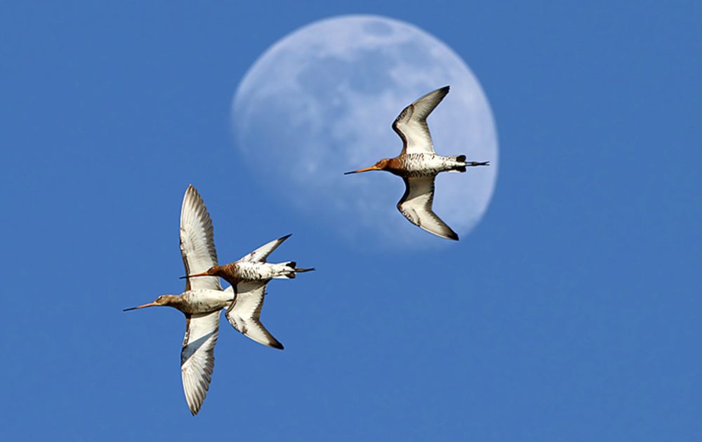 Van de grutto word ik nooit moe. Als zij zich op de grond bevinden, zijn ze prachtig. In de lucht tonen zij hun waanzinnige vliegkunsten. Deze langeafstandsvliegers kunnen duizenden kilometers non-stop vliegen. De grutto baltst in kleine groepjes en dan hoor je de karakteristieke roep versneld en in lange reeksen achter elkaar, “JoetoeJoetoeJoetoe”. De vogels gedragen zich als heuse stuntvliegers van de luchtmacht met spectaculaire formatievluchten. De show is met veel snelheid en precisie een adembenemende spektakel, vooral als de maan er ook is.