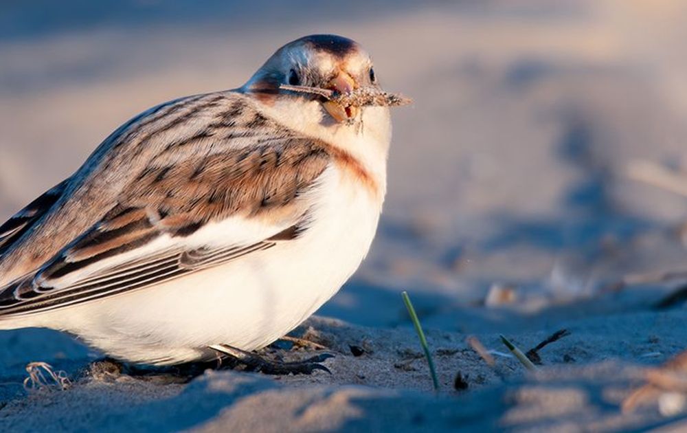 Als je dicht bij de kust woont bof je, om allerlei redenen natuurlijk. Een daarvan is dat je zee- en kustvogels kunt zien die – what’s in a name – in het binnenland zeldzaam zijn. De sneeuwgors is er geen uitzondering op. Niet dat ze algemeen zijn aan de kust, zeker niet. Want het is een schaarse wintergast, waarvan er hooguit een paar duizend in Nederland overwinteren. En dus is een ontmoeting met sneeuwgorzen er een die de dag helemaal goed maakt.