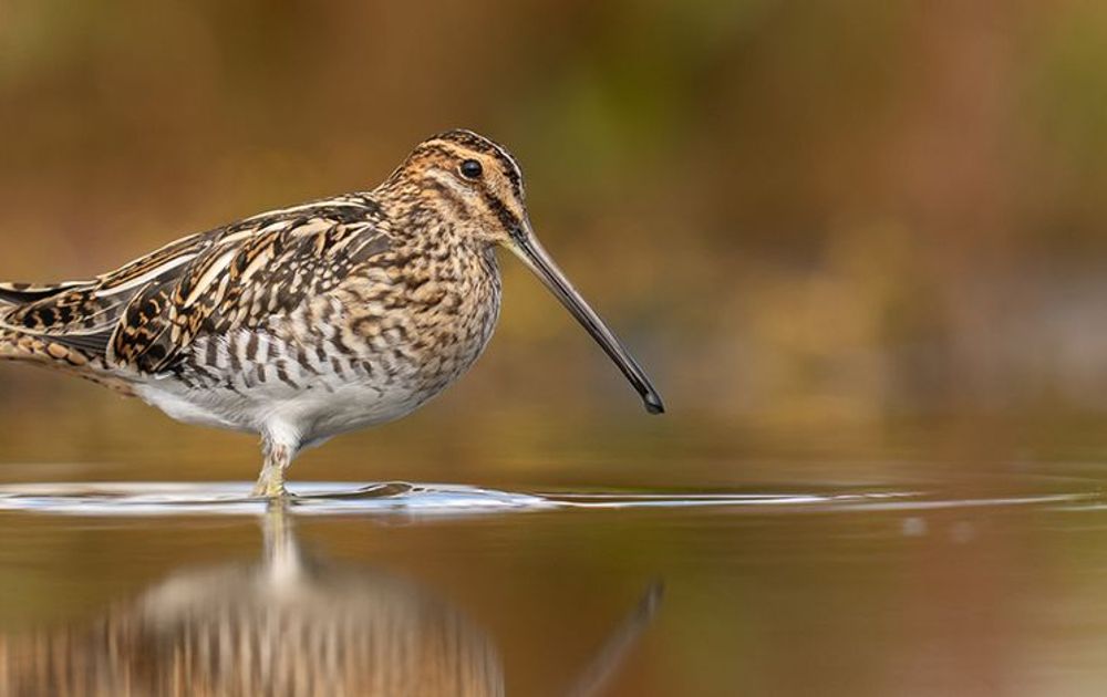 Lukt het om een watersnip in de kijker te krijgen, dan kun je je vergapen aan het prachtig getekende verenkleed. Aan de lange snavel en de bandering op de flanken is hij te onderscheiden van het veel schaarsere bokje, ook een snippensoort.