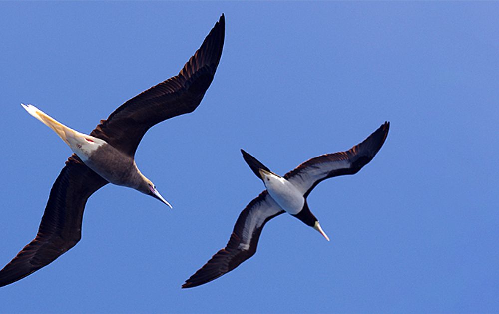 Wie bij ‘Caribisch’ direct visioenen krijgt van helderblauw water, die zit goed. Maar voor zover je daar ook beelden bij krijgt van vissende fregatvogels, bruine genten of andere tropische dieren, kan zo’n overtocht tegenvallen. De drie dagen die de oversteek duurt – onderweg doen de mensen van het Instituut voor Onderzoek der Zee ook veel tijdrovende metingen aan het water – zien Geelhoed en Leopold een aantal vogels dat letterlijk op twee handen te tellen is. Een paar zwartkapstormvogels, een middelste jager, een roodvoetgent en een brilstern, dat is het wel zo’n beetje. Oh ja, ook nog een paar niet nader geïdentificeerde pijlstormvogels, op zeer grote afstand.