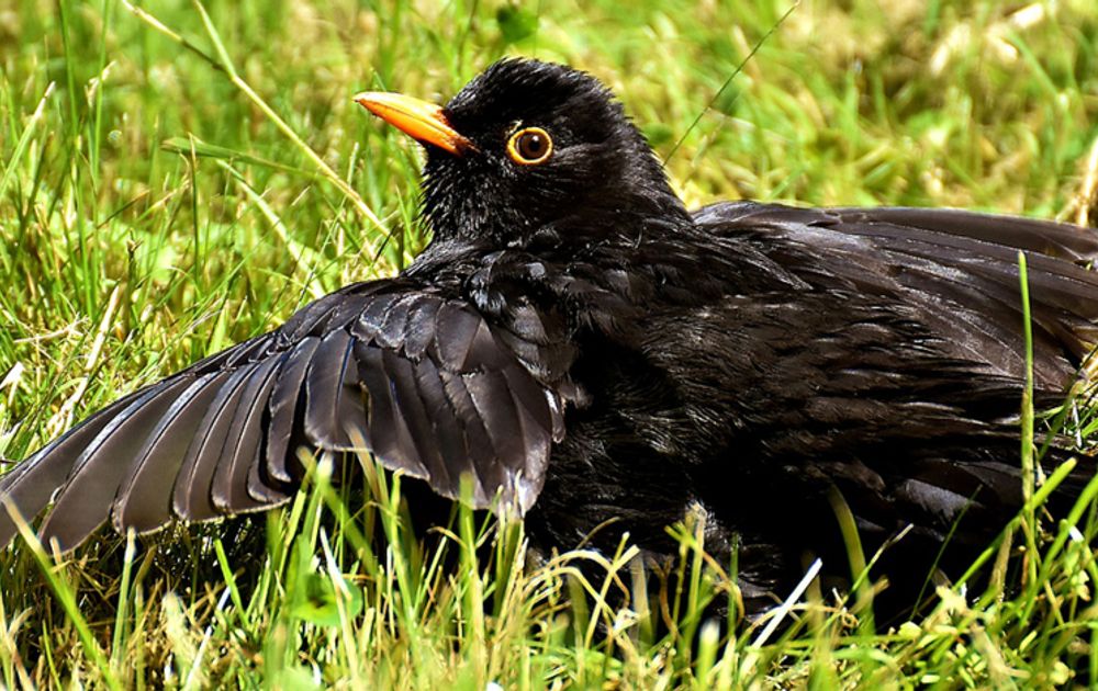 Soms zitten vogels met gespreide vleugels vol in de zomerzon. Heel warm natuurlijk, maar door de hoge temperatuur nemen luizen en mijten de benen. Het wordt ze te heet onder de voeten. Dat is de vogel wel even wat hijgen en puffen waard!