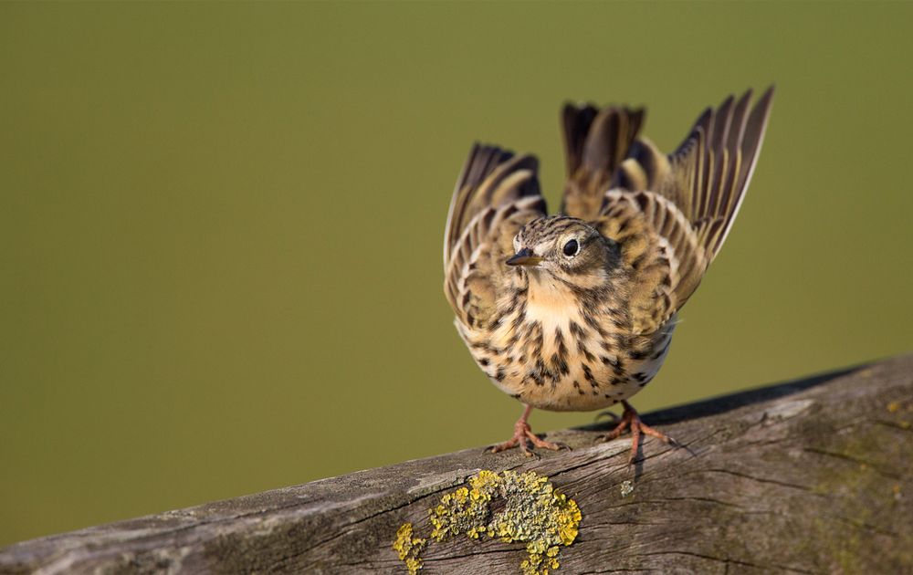 De vreemde eend in de bijt is de waterpieper. Deze piepers broeden in de bergen van zuidelijk Europa en in de herfst trekken ze naar het noorden. Bij ons zijn ze vanaf oktober te zien. U kunt ze aantreffen in natte graslanden, bijvoorbeeld langs rivieren, vaak samen met graspiepers. Ze vallen daarbij op doordat ze groter zijn. Bovendien hebben waterpiepers donkere poten en graspiepers roze. In zomerkleed – te zien als u op vakantie in de Alpen bent – zien ze er heel anders uit. Ze hebben dan een mooi roze borst.