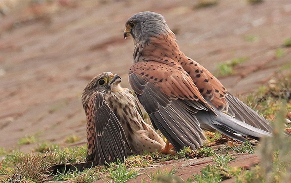 "Ik probeer foto's met een verhaal te maken. Foto's die gevoel tonen, zoals deze torenvalken. Het was ongelooflijk hoe het mannetje het vrouwtje steeds in bedwang hield door op haar poten te staan. Dit gedrag is voor mij een raadsel. De foto is in oktober dit jaar genomen bij het wad van Noord-Friesland."