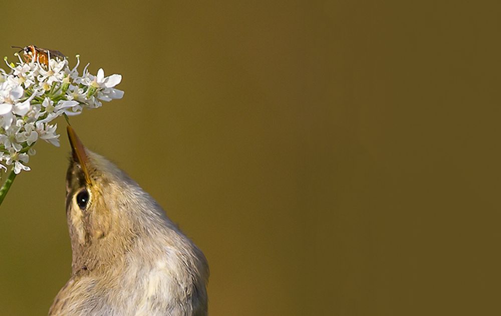 “Een week op een camping in Rockcliffe, aan de Schotse zuidwestkust, gaf mooi de gelegenheid om het gedrag van de vogels in de gaten te houden. Op een ochtend verscheen deze fitis, die vooral belangstelling had voor 'iets' tussen de bloemen. Het 'iets' zag ik later pas op de foto.”