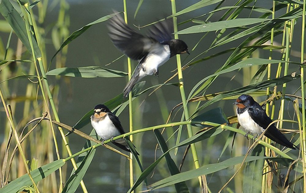 Boerenzwaluwen slapen op veel verschillende plekken. Een goede zijn de rietvelden bij Elburg.