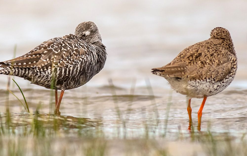 Tureluurs zijn erg vocaal. Bij het opvliegen laten ze een luid, wat nerveus TUU-tuu-TUU horen. Zwarte ruiters klinken in zo’n situatie heel anders: iets wat zich laat vertalen als een kort TSJOE-iet.