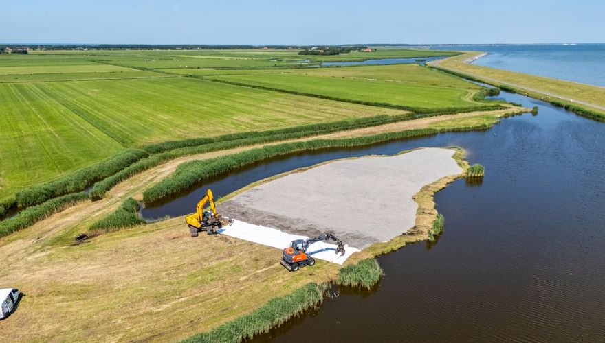Alle reden dus om de visdief te helpen. Bijvoorbeeld met een mooie broedlocatie, die afgelopen maand gereed kwam. Op een landtong van Wetterskyp Fryslân in de Oosterwijdesloot is een laag van tien centimeter schelpen aangebracht over een oppervlakte van 3.000 vierkante meter. Dit schelpeneiland biedt een ideale plek voor pioniervogels als de visdief. Er kunnen ook andere kustvogels terecht die graag op de kale grond broeden zoals de grote stern, noordse stern, kluut, bontbekplevier en kokmeeuw.