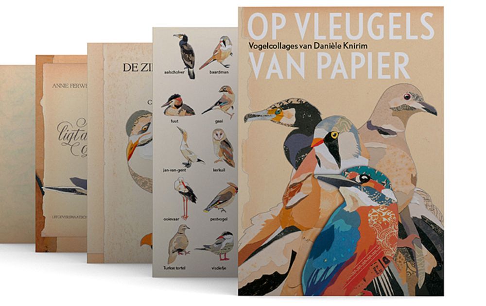 “Sinds ik van de academie kom, doe ik vaak iets met vogels. In mei 2018 had ik een kleine expositie op een designbeurs in Den Haag. Het leek mij leuk om alle tuinvogels te maken. Dat bleken er véél te veel. Uiteindelijk heb ik er een stuk of 40 gemaakt. Op de expositie kwam uitgever Peter Müller een musje bij mij kopen. ‘We moeten hier een boek van maken’, fluisterde hij. Ik geloofde hem niet, maar anderhalf jaar later stuurde hij een e-mail. We zijn vogels gaan uitzoeken en die ben ik gaan knippen en plakken.”