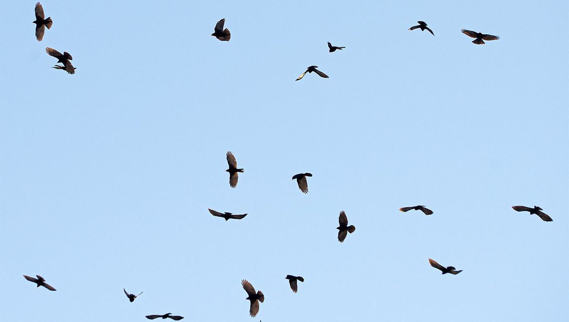 We kijken naar buiten en zien een grote zwerm zwarte vogels overvliegen; alpenkauwen. De kraaiachtige met gele snavel en rode poten leeft hoog in de bergen. In principe zijn ze daar het gehele jaar te vinden en zijn ze vaste bezoekers van de terrassen bij de bergstations. Daar is altijd wel een korst brood of patatje te vinden. ’s Winters wanneer het lastig wordt om een kostje bij elkaar te scharrelen, komen ze in de dalen. ’s Ochtends verschijnen ze met groepen in de dorpen en stropen alles af op zoek naar iets eetbaars. Veertig of vijftig vogels bij elkaar is geen uitzondering en elk dorp in het Kleinwalsertal schijnt zijn eigen club te hebben. Net als kauwen zijn ze erg sociaal, communiceren veelvuldig met elkaar en zijn absoluut niet schuw. Tot ze ’s middags weer vertrekken en de avond en nacht doorbrengen hoger in de bergen.
