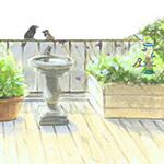 Plaats potten of houten bakken om besdragende struiken te planten en vaste inheemse planten waar insecten op afkomen. Of laat de afscheiding met de buren begroeien met een klimplant, voor beschutting van de vogels.