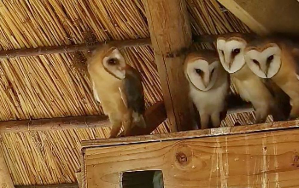 Deze week zag ik rond middernacht 2 kerkuiltjes op het dak van de hooiberg zitten. Het riet geeft zoveel houvast dat ze volop rondrenden en klauterden daar, meestal ondersteund door een hoop vleugelgewapper. Het begon een beetje te druppelen en dat werd ook langzaam maar zeker steeds meer. Terwijl ik door de camera hun bewegingen volgde, zat ik eigenlijk te wachten op het moment dat ze het wel mooi zouden vinden en naar de droge ruimte onder het dak zouden vliegen. Maar zelfs toen het behoorlijk begon te plenzen gebeurde dat nog niet. In eerste instantie gingen ze gewoon door met hun ontdekkingsspel, maar op een gegeven moment spreidden ze hun vleugels en lieten de harde druppels op hun veren kletteren. Een van de twee had er trouwens snel genoeg van en verdween alsnog naar binnen de hooiberg, maar de andere heeft zeker 2-3 minuten zo onder de douche gezeten. Ik had dat bij kerkuilen zelf nog nooit gezien.