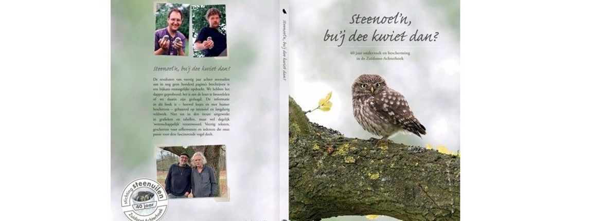 Toen we in 2011 ons 25-jarig jubileum vierden, brachten we ook een boek uit met de voor de voor de hand liggende titel De steenuil. Daar is nog steeds vraag naar, maar helaas lang geleden al uitverkocht. Daarom hebben we een nieuw boek gemaakt, ditmaal met een iets spannendere titel: Steenoel’n, bu’j dee kwiet dan? (Vrij vertaald: Steenuilen, zijn jullie die kwijt dan?) Wees gerust, alleen de titel is in de streektaal, de rest van het boek is in het Standaardnederlands, of zoals dat vroeger heette 'Algemeen Beschaafd Nederlands'. Of we het overal beschaafd hebben gehouden is aan de lezer om te beoordelen, maar de stijl is zoals in onze blogs: luchtig maar informatief, of zoals we het op de achterflap noemen: losjes en met humor, maar wel degelijk wetenschappelijk verantwoord.