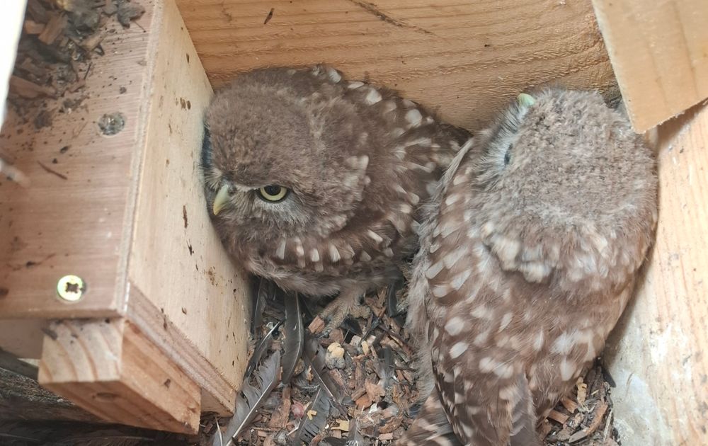 Ook op de andere 2 adressen goed nieuws, één maal 2 grote kuikens die zichtbaar voor de erfbewoners hun eerste vlucht al gemaakt hadden en één lege kast waarvan we ook zeker weten dat deze eenling de vlucht (of zware val door zijn overgewicht) heeft gemaakt! Hoe fijn is dan deze afsluiting van het seizoen.