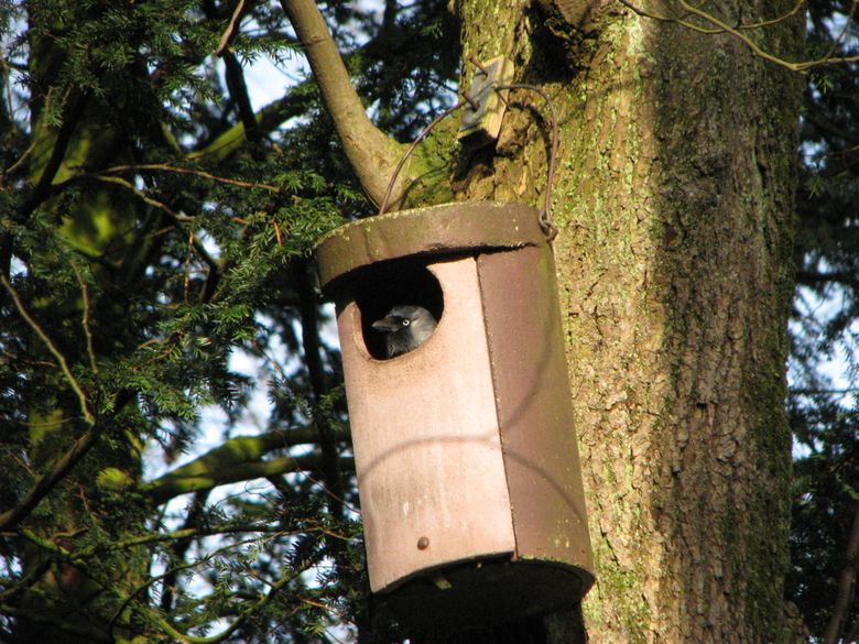 Vanaf het eerste ei kan een kauw al gaan broeden. Ons kauwenvrouwtje doet dat duidelijk nog niet. Van maandag op dinsdag bleef ze voor het eerst ook ’s nachts in de kast. Van vast broeden was nog geen sprake want een groot deel van de nacht stond ze boven of naast haar eieren. Nu het avond is zit ma kauw wel degelijk in de broedhouding. Het kan niet lang meer duren of het serieuze broeden gaat beginnen. Dat wordt met gemiddeld 18 dagen een hele zit, een taak die voornamelijk door de aanstaande moeder wordt uitgevoerd.