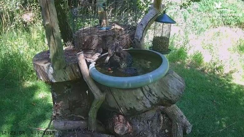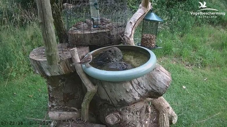 Als ik naar buiten kom met nieuw vogelvoer, hoor ik gegarandeerd vanuit de haag een harde ‘tsjiep’. Even later komt dan de hele zwerm aanwaaien!