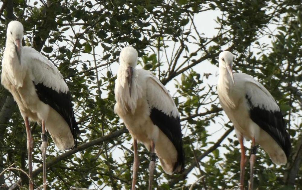500 Meter bij ons vandaan heeft een paartje ooievaars vorig jaar zelf een boomnest gebouwd. Theo Meijer meldt gelukkig alle ringnummers die hij met de verrekijker kan aflezen bij het vogeltrekstation. Die terugmeldingen komen bij de ringers terecht. Voor de ooievaars zijn dat onder anderen Arda en Wim van STORK.