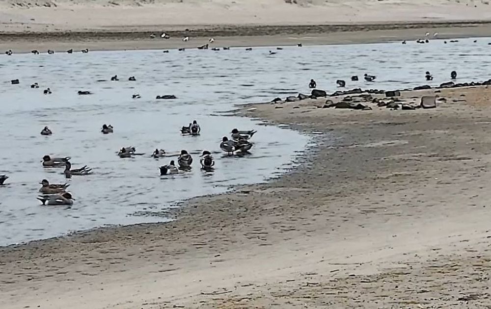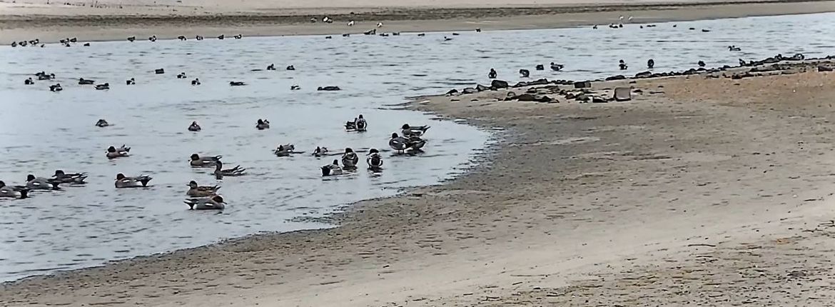Er zijn al een aantal eendensoorten gezien in de lagune, zoals de imposante bergeend. Met zijn mooie verenkleed is deze soort makkelijk te herkennen op de camera, zelfs in de verte. Een andere eend die we al veel hebben gezien is de smient. Ook de ganzen zijn af en toe van de partij, zoals de grauwe gans, al lijken dit vrij zeldzame bezoeken te zijn.
