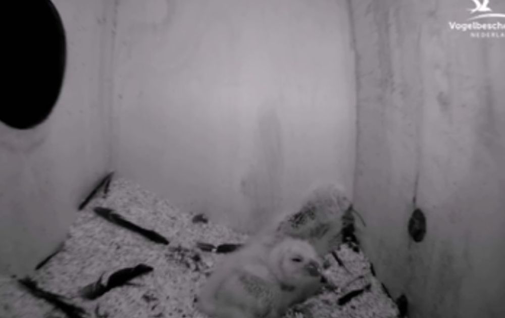 De beelden laten zien dat er op dit moment waarschijnlijk voldoende (vr)eten aanwezig is voor de hongerige jonge bosuiltjes. Vorige nacht heeft Pa er maar liefst vijf muizen naar binnen gewerkt, enige volgens de overdrachtsmethode en enkele gewoon via het vlieggat naar binnen gegooid.