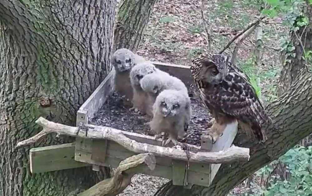 Voor een spectaculaire terugkeer bij Beleef de Lente zorgde de oehoe. Veertien jaar geleden hadden we deze reuzenuil al broedend in beeld in steengroeven in Winterswijk en later ook bij Maastricht. En enkele jaren geleden een bijzonder geval in een boerenschuur in Noord-Holland. Deze keer kregen we werkelijk fantastische beelden voorgeschoteld van een oehoepaar in een bos bij Hengelo. Het werd een voorspoedig seizoen, met vier jongen, die na geringd te zijn één voor één het nest verlieten. Niet altijd even soepel, maar dat maakte verder niet uit. Ze werden keurig verder groot gebracht op de grond.