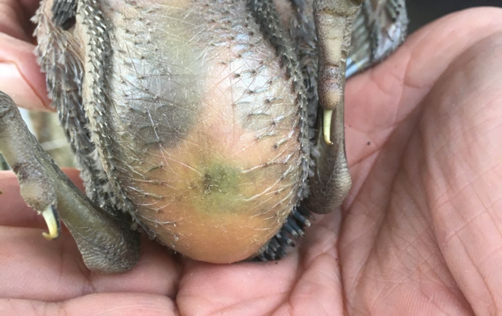 Toen de vleugelveren begonnen te spruiten, bleef de buik kaal. En ook toen rest van het lichaam, volop bevederd was: de buik bleef kaal. Een wonderlijk fenomeen, zo leek het me aanvankelijk. Toen ik erover na begon te denken, drong de zin ervan langzaam tot me door. Zo'n blote buik is eigenlijk best comfortabel als je  op je buik in een met dons gevoerde nestkom ligt. Zou je er veren hebben, zou de warmte van het donzige materiaal dat de ouders met zoveel moeite verzameld hebben, niet goed overgedragen kunnen worden. Veren isoleren immers geweldig goed. Pas tegen de tijd dat de jongen het warme nest verlaten, heeft een bevederde buik meerwaarde. Lijkt me een plausibele verklaring. Treft u de komend tijd een jonge kauw met blote buik, weet dan dat die eigenlijk te vroeg het nest heeft verlaten.
