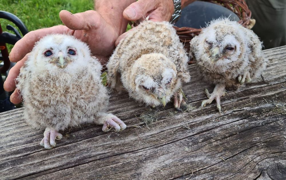 De volgende dag een appje: beide jongen leefden nog en het vrouwtje had de nieuwe plek geaccepteerd. So far, so good. In het najaar wordt er een heuse bosuilenkast bevestigd tegen de achterwand van de schuur, direct tegen de bosrand aan. Hopelijk kan die het verlies van de beuk compenseren en zorgen dat de uilen in hun leefgebied kunnen blijven. De eigenaar draagt ze in ieder geval een warm hart toe!