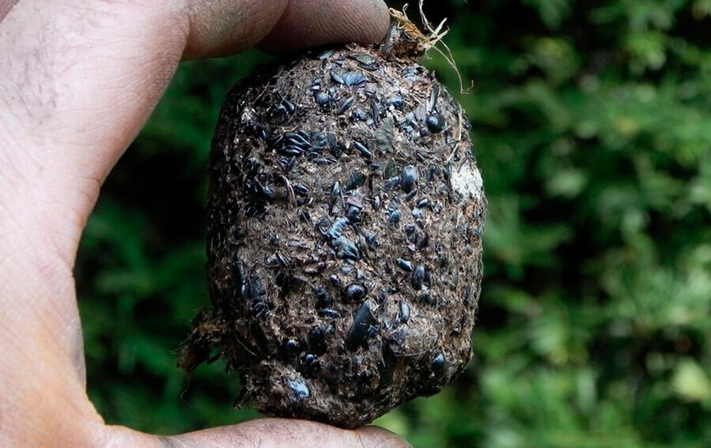 Ook zitten de braakballen vol met borstelharen van wormen. Maar die zijn zo klein, dat ze met het blote oog niet te zien zijn.