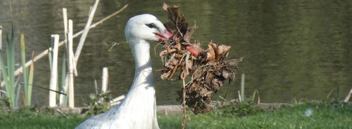 Het bouwen aan de takkenrand van het nest, de zachte binnenbekleding van de nestkom, vaak paren of ‘knuffelparingen’. Veel samen doen, maar ook steeds meer opletten dat één van twee op het nest blijft. Het nest wordt steeds belangrijker en de paarband versterkt.