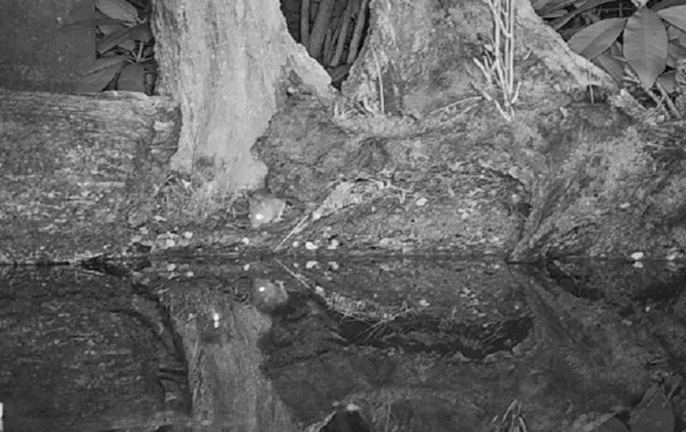 Het is echt heel moeilijk te zien – we hopen nog op de inbreng van een expert – maar mogelijk bezoekt de rosse vleermuis de vijver.