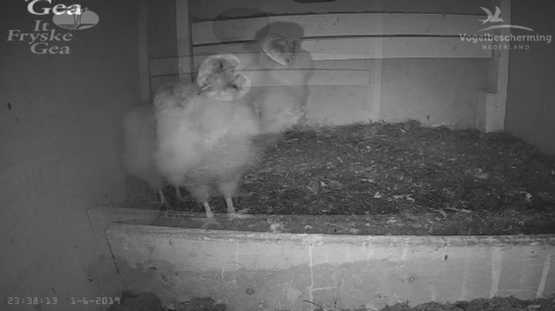 De kuikens groeien gestaag door en je ziet ze bijna met de minuut groter worden, ik garandeer u dat het s’ avonds nooit saai is bij de kerkuilen, je ziet ze hun vleugelspieren oefenen en hoe ze gevoerd worden. En misschien ziet u ook wel wie als volgende de top gaat beklimmen!