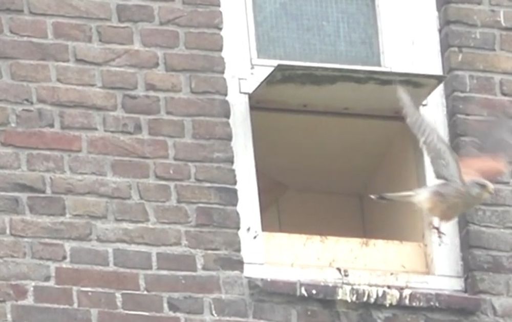 Pas vanaf het dak van de toren kunnen de valken alles zien, van stad tot park, industrieterrein en buitengebied.