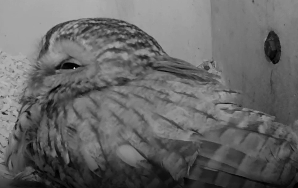 Vrouw bosuil heeft op haar buik een broedvlek zitten. Op die plek zijn de veren uitgevallen en is de huid extra gezwollen en warm. Door die huid over de eieren heen te draperen, bereiken de eieren uiteindelijk een temperatuur van ongeveer 38℃ en een luchtvochtigheid van zo’n 45%. Onder invloed van deze 2 factoren, vormt zich een heel aderenstelsel door het gehele ei heen, startend vanaf de kiem die op de eidooier ligt. De eidooier is de voeding voor het embryo. Vrouw bosuil heeft er nu ongeveer 10 dagen broeden op zitten. Dat betekent dat er nu embryo's van ongeveer 0,5 centimeter in de eieren aanwezig zijn! Het draaien van de eieren is noodzakelijk om de bloedvaatjes te stimuleren om optimaal voeding en vocht aan- en af te voeren.