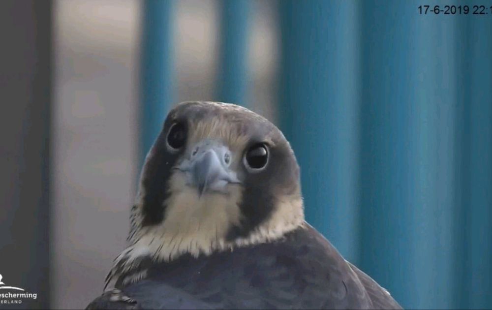 De jonge slechtvalken waren vandaag veel te horen, maar weinig in beeld voor de webcams. Wij zijn ter plekke gaan kijken. Wij zagen dat ze inderdaad maar op momenten van de dag aktief zijn. Meestal zijn dat de momenten dat ze ook via de webcams te horen zijn.